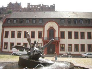 Ðа Карловой площади в Хайдельберге, конечно же, первое, что броÑаетÑÑ Ð² глаза – Ñто грандиозный вид на знаменитые во вÑем мире руины ХайдельбергÑкого замка. Ðо Ñледующее, на что обращает внимание любой гоÑть города – Ñто интереÑный фонтан в Ñередине Карловой площади, выполненный Михаелем Шонхольцем и поÑвÑщенный монаху-бенедиктинцу СебаÑтьÑну МюнÑтеру: в Ñвое Ð²Ñ€ÐµÐ¼Ñ Ð¶Ð¸Ð²ÑˆÐ¸Ð¹ на Ñтой площади Ñтот знаменитый ученый Ð¡Ñ€ÐµÐ´Ð½ÐµÐ²ÐµÐºÐ¾Ð²ÑŒÑ Ð¾Ñтавил Ñамое Ñтарое изображение города Хайдельберг и замка над ним.